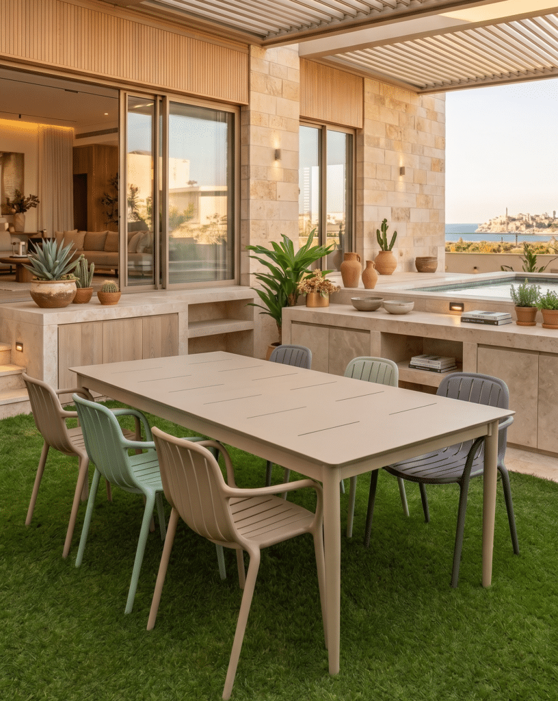 הכירו את פינת הקפה המושלמת למרפסת או לגינה שלכם – דגם סוואנה. סט אלומיניום הכולל 3 חלקים, יוצר פינת ישיבה קומפקטית ואלגנטית, אידיאלית לרגעים של קפה ורוגע. הסט משלב עיצוב מודרני עם נוחות ועמידות, וניתן לבחור בין 3 צבעי אלומיניום להתאמה אישית.