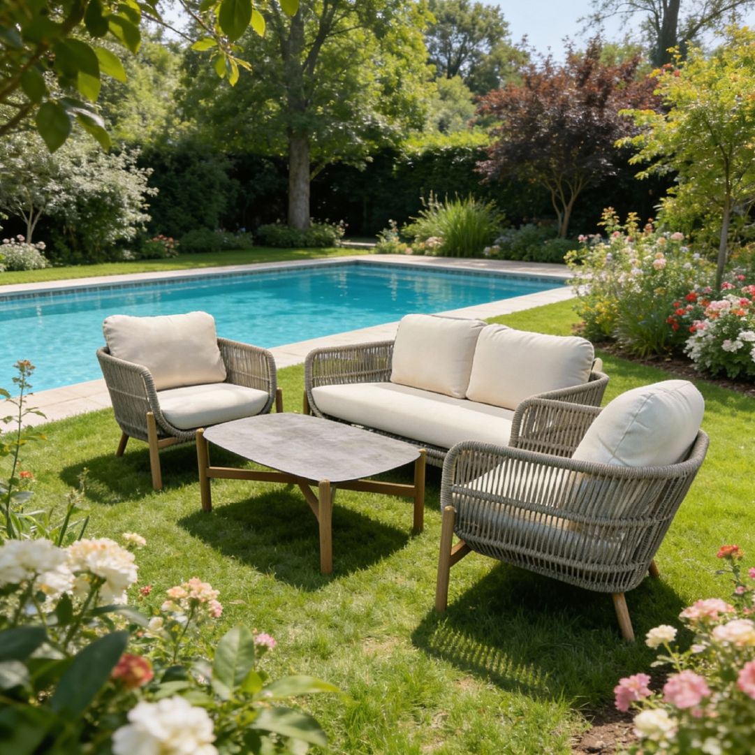 דגם לוטוס פינת ישיבה תלת מושבית 1.70בדי חוץ ספרדי Sunbrella