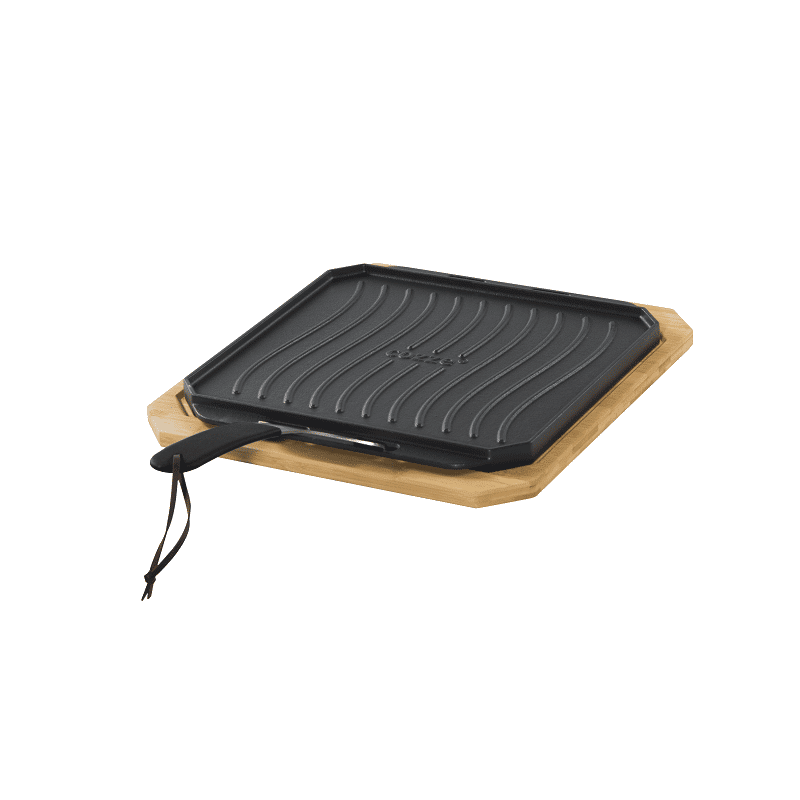 מחבת יציקה פסים 330X330 מ"מ עם תחתית עץ