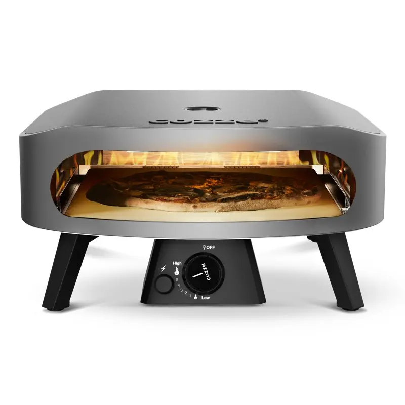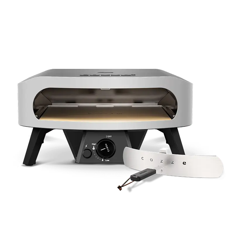 טאבון גז קלאסי Cozze בקוטר 17 אינץ' עם זמן אפייה מהיר במיוחד של כ-2 דקות. כולל מבער U מנירוסטה לפיזור חום אחיד, אבן שמוט איכותית מאושרת LFGB, דלת לחימום מהיר ומד טמפרטורה מובנה. קומפקטי, עמיד ומתאים לשימוש במרפסת, חצר או קמפינג.