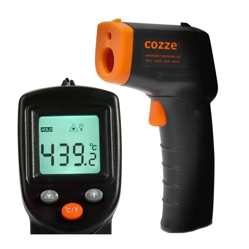 מד חום אינפרא אדום דיגיטלי ואלחוטי למדידת טמפרטורה מדויקת ומהירה, גם על משטחים לא אחידים.